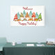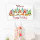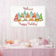 Winter Holiday Gnome Banner is cute to welcome your guests or to have a photo op! It's designed with gnomes dressed in winter clothing in front of pine trees on a white background that can be changed to any colour you would prefer.