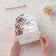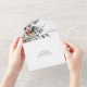 Let our watercolor holly with delicate silver snowflakes invitations be the first glimpse into your magical winter wedding. Create an unforgettable first impression with a design that speaks to the elegance and romance of the season. The All-in-One wedding invitations are both beautiful and practical by combining the wedding invitation with an easy to remove perforated RSVP postcard. They are also quick and easy to prepare for mailing. Simply address the invitation, fold the back flap and seal with the included clear stickers. Once your guests receive the pre-addressed invitation they simply tear off the perforated RSVP card and drop it in the mail. The addition of the QR code allows your guests to easily access your wedding website for information including reception details and dinner choices! Simply replace the sample URL with the URL from your wedding website.