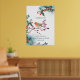 Christmas Holiday Poster. This design features Red Robin with an arrangement of holly leaves and red berries. You can adjust text according to your requirements.