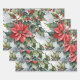 Winter Holly Wrapping Paper Flat Sheet Set of 3