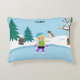 Winter scene girl's accent pillow personalized with child ice skating and 3 dogs watching.