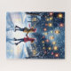 Capture the magic of winter nights with this enchanting puzzle featuring two friends ice skating beneath glowing lanterns and softly falling snow. A cozy winter village sets the perfect backdrop for this heartwarming holiday scene. The number of pieces and puzzle size can be customized to any of the other rectangular sizes offered, making it ideal for all skill levels and puzzle enthusiasts.