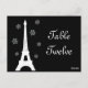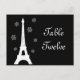 A tall, elegant and stately Eiffel Tower decorates this Table Number Postcard. Photo illustrated crystals decorate the snowflakes that dot the night sky. It is a romantic accent for your parisian themed event. It is part of a full wedding line that also coordinates easily with the Winter Snowflake wedding line.