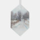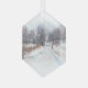 I like the look and the weight of this glass Christmas ornament. It came with a white ribbon for hanging. It's very shiny on the front and a little more matte on the back where it was printed. Looks nice on the tree with a light behind it. The printing is very good for being done on glass. I think it could be a tad bit darker in some areas compared to the product view on the site. But I guess light colors would be problematic on a translucent surface no matter what. I'm happy with it.