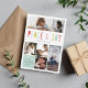 A bright and colourful holiday card design that says "Peace and Joy" in a playful font. Customize this card with 6 photos and a personalized greeting.