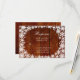 Lacy white, winter snowflakes decorate the border of this dark brown RSVP, that has an illustrated barn board background making it perfect for the rustic or county, winter wedding. If additional items are needed in this collection, just contact us at prettyfancyinvites@gmail.com with your request.