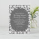 Delicate, lacy white, winter snowflakes decorate the border of this grey wedding invitation, that has a background with a textured linen look. This invitation is shown on the matte paper, however, I recommend the weight and texture of the linen paper to enhance the look and feel of the invitation. If additional items are needed in this collection, just contact us at prettyfancyinvites@gmail.com with your request.