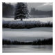Winter landscape, snow-covered, sun-drenched with the frozen water surface. A play of light and shadows