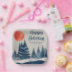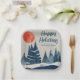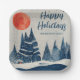 Winter Landscape Forest Orange Moon Navy Blue Drawing Holiday Paper Plates. Calm winter snow landscape with forest. Happy holidays in a trendy script. Add your family name.