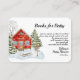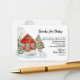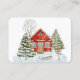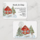 A charming baby shower Enclosure card with festive winter background with fir trees and a red house! You can personalize this with your own details. A cute, charming, winter design.
