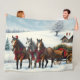 Winter Landscape with Horses and Cabin Fleece Blanket