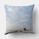 Photo throw pillow cushion with a minimalistic view on a winter landscape in Holland with a path and a canal towards a windmill under a layer of snow with nice clouds at sunrise in the dutch countryside.