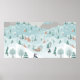 Winter landscape with snow, trees and children on poster