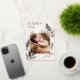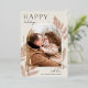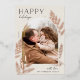 A chic and elegant holiday card design featuring a single vertical or portrait-oriented photo in a unique arched layout, embellished with finely detailed botanical foliage in gold foil. "Happy Holidays" appears at the top left, with your family name at the lower right. A refined nature-inspired choice for your Christmas 2022 greetings.