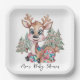 Winter Little Reindeer Sewn Patchwork Baby Shower Paper Plate