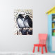 WINTER LOVE BIRDS IN SNOW Black White Poster