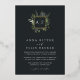 Our elegant monogram wedding invitation features your initials, monogram or duogram at the top, nestled inside a square wreath of winter watercolor foliage with gold foil trim. A modern and elegant take on the botanical trend for winter weddings. Colorway: Winter Meadow, a blend of muted dusty sage green, fern, and olive green foliage on a soft black background.