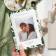 Share holiday greetings with these photo Christmas cards featuring your favourite photo set on a modern and minimal white background with a forest green botanical border. An editable message area lets you customize your holiday greeting in modern lettering. Add your family name or names beneath.