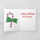 Winter night Christmas Card with a snowman, Christmas tree, and Candy Cane inside.