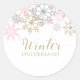 Winter Onederland Snowflake sticker envelope seal for first birthday invites with pink, gold and silver snowflakes.