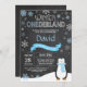 Winter Onederland 1er Anniversaire Invitation. Pingouin. Flocon de neige bleu et blanc. Premier anniversaire. Garçon 1er Invitation Anniversaire. Arrière - plan de tableau de bord. Noir et blanc. Pour plus de personnalisation, cliquez sur le bouton "Customiser" et utilisez notre outil de conception pour modifier ce modèle.