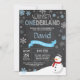 Winter Onederland 1st Birthday Invitation. Snowman. Blue and White Snowflake. First Birthday. Boy 1st Bday Invite. Chalkboard Background. Black and White. For further customization, please click the "Customize it" button and use our design tool to modify this template.