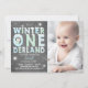 Winter Onederland birthday party invite Boy Blue