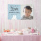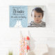Simple, cute, cartoon white bunny and winter day with snow. Unique, whimsical, adorable, blue Winter ONEderland banner, for baby's first birthday, with custom photo.
