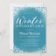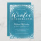 Cute winter wonderland theme birthday party invitation template card featuring white typography text that says "winter wonderland" with glowing snowflakes around against a turquoise blue background. Great for a boy's first birthday party during the Christmas and winter season.