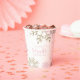 Winter Onederland pink and gold snowflakes first birthday party paper cups.