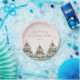 Celebrate your little one’s milestone with these Winter Onederland Pink Bow Pine Trees 1st Birthday Paper Plates featuring silver snowflakes and three festive Christmas pine trees with pink bows. Easily personalize all text and photos for a magical winter birthday celebration.