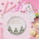 Winter Onederland Pink Bow Pine Trees 1st Birthday Paper Plate