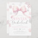 Winter Onederland Pink Silver Bow 1st Birthday Invitation