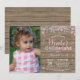 Rustic Winter Onederland Pink and Silver Girl 1st Birthday Invitation with custom photo. 1st First Birthday Party. Pink and Silver Glitter Snowflake. Girl Birthday Party Invitation. Winter Holiday Bday. 1st First Birthday. Rustic Wood Background. Country Vintage Retro Barn. For further customization, please click the "Customize it" button and use our design tool to modify this template