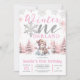 Winter Onederland Pink Silver Glitter 1st Birthday Invitation