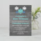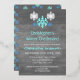 Winter onederland snowflake first birthday invitation for a baby boy . Features blue snowflakes against a rustic country barn wood background.