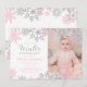 Winter ONEderland first birthday with pink and silver glitter snowflakes photo birthday invitation.