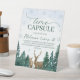 Invite guests to share special wishes with this Winter ONEderland time capsule sign! Featuring watercolor pine trees, woodland deer, and falling snowflakes, this elegant forest-inspired display is perfect for your winter first birthday or baby shower. Use it to guide guests as they write predictions, memories, or blessings for your child to open on their 18th birthday — a timeless keepsake for years to come.