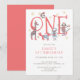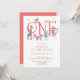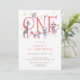 Whimsical unique illustrated typography holiday winter 1st birthday party invitation. A unique whimsical cute collage of painted woodland and safari party animals. A perfect choice for a child's first birthday during the winter holiday season. Unique illustrated style.