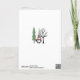 Winter penguin and trees Christmas photo folded Holiday Card. it showcases a penguin in winter clothes, trees, gifts and birds on the cover, a photo on the iside left and the same penguin with a house and your wishes on the inside right.