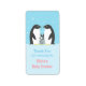 A cute and heart warming label to decorate your baby shower gifts and gift bags. It has a little baby penguin in the sweet warmth embrace of its parents. Snowflakes, hearts and snow are blended into the blue background. Great for baby showers held in the winter December period. Add your thank you message!