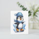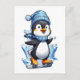 Cool winter Penguin wearing a head warmer and scarf skating on ice transparent background Graphic art