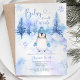 Winter Penguin Snowflakes Silver Blue Baby Shower Invitation