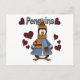 Winter Penguin T-shirts, hoodies, cards, stickers, magnets, mousepads, bags, and other penguin lover apparel and gifts featuring a penguin dressed in winter garb surrounded by lots of red hearts!