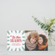 Celebrate the holiday season in style with a rustic winter pine holiday photo card. The trendy Christmas photo card features a green pine border, the words "tis the season" in red stylish typography, and placeholders for custom text and a photo.