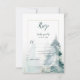 Winter pine trees with snowy background wedding RSVP. The back of the card is a buffalo plaid check pattern in pine green and black. Personalize with your own information.