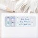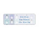 Four squares in pale blues and purples are decorated with snowmen wearing top hats and winter clothing, like toboggans, scarves, and mittens. White stitching adds a decorative touch, giving the repeating pattern the appearance of a quilt, creating a perfectly cozy feeling for winter. Edit the address information to make these labels uniquely your own. You can also choose from standard address and shipping sizes for the label.