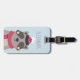 This adorable personalized luggage tag makes a great kids stocking stuffer or gift for grandchildren. Cute wintry design features a snowy sky blue background with a cute raccoon decked out in a pink winter hat and scarf. Personalize with a name or monogram on the front, and add your contact information to the reverse side.