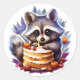 Winter Raccoon with a 1th Birthday cake Classic Round Sticker