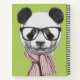 This design features a cute panda bear wearing eyeglasses and a pink knit scarf.